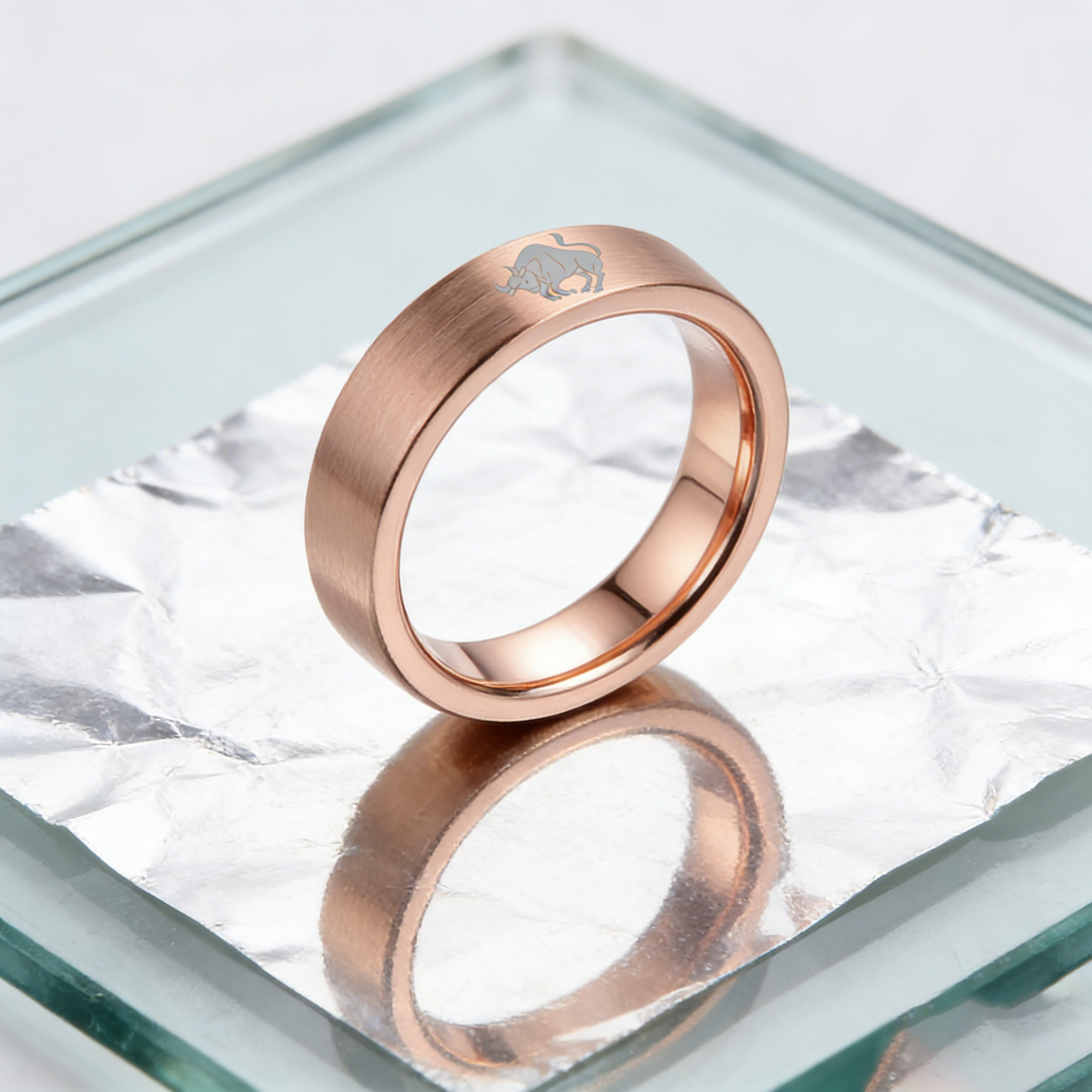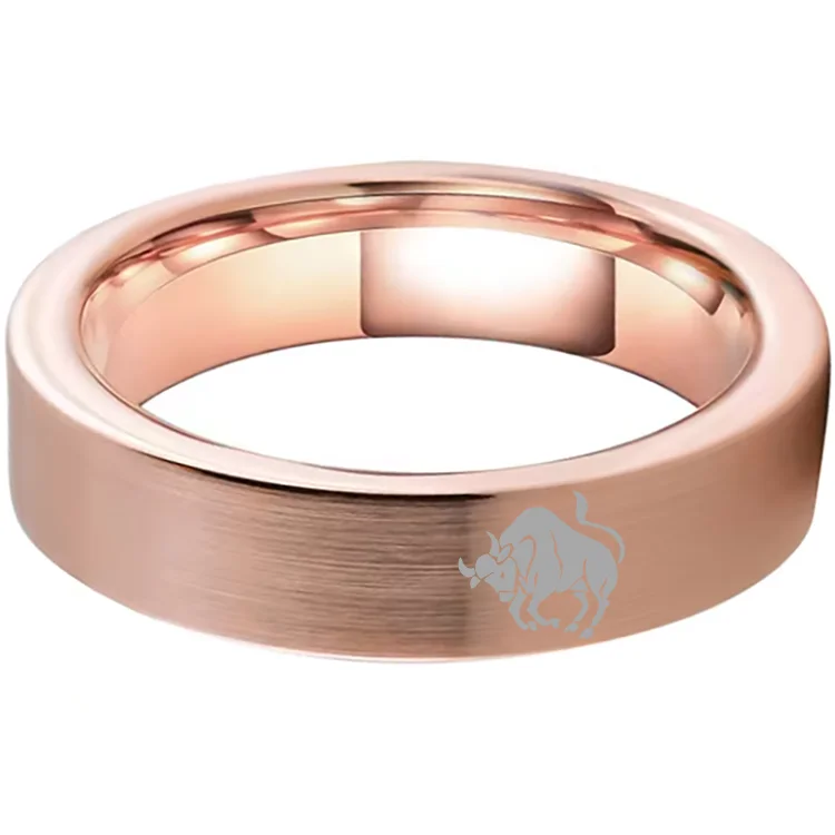 Taurus Tungsten Carbide Rings Rose Gold Flat Wedding Band Comfort Fit Men and Women 4MM 6MM 8MM