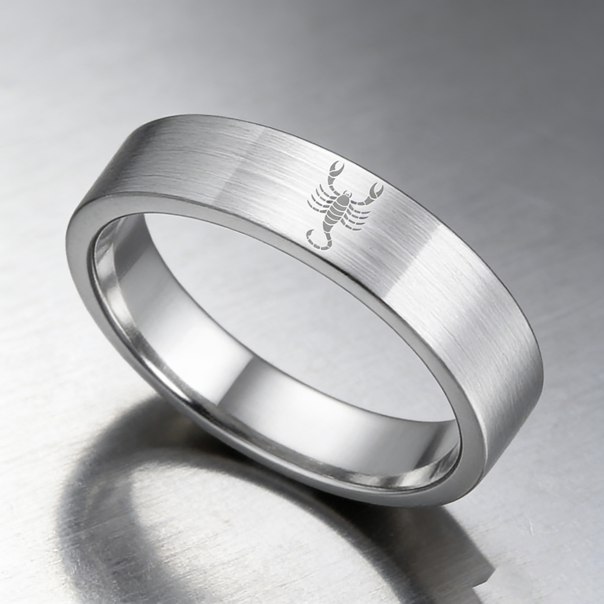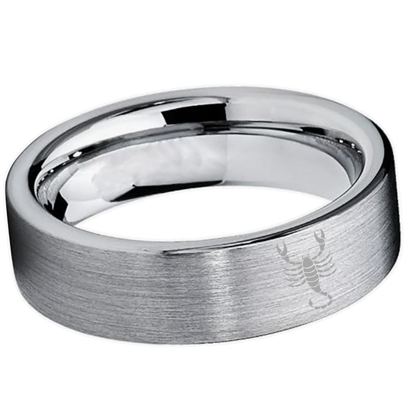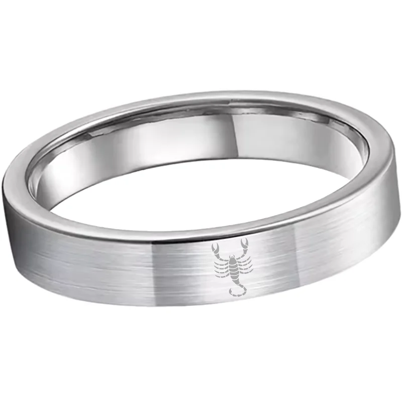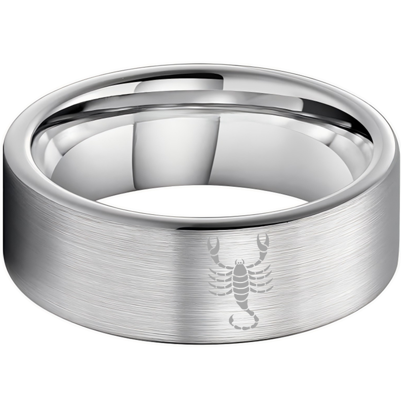 Wedding Fashion Sliver Scorpio Tungsten Ring and Flat Edge Comfort Fit for Men and Women 4MM 6MM 8MM Width