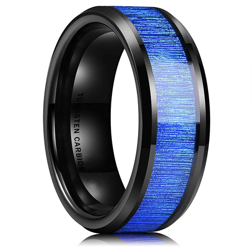 This beautiful black and blue Gold tone tungsten carbide ring with a Blue Gold wood inlay - 6MM 8MM in width. If you are looking for a ring that is scratch proof and forever keep its shine, then our Tungsten Carbide rings are for you. Tungsten Carbide is ranked second hardest next to diamond on the Mohs scale, diamond being a 10 followed by Tungsten Carbide as 9.