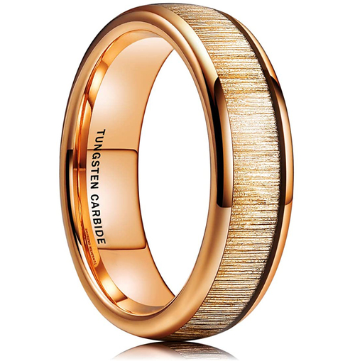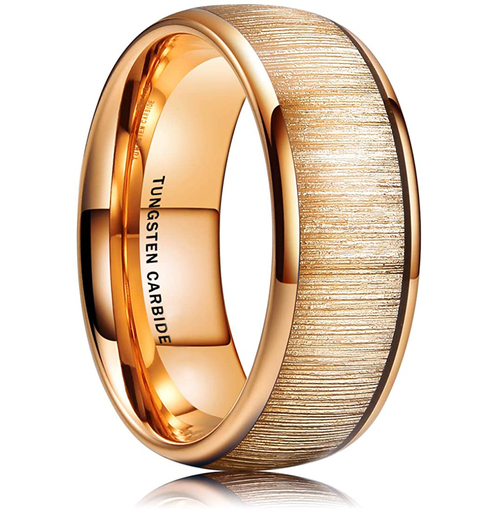 6MM 8MM Tungsten Matching Gold Band With Gold Wood Inlay,High Polish Domed Top Carbide Wedding Band Ring for womens or mens.