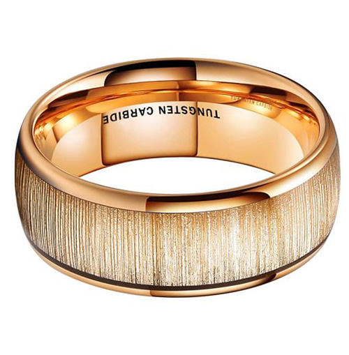 Women's Tungsten Wedding Bands Wood Inlay and Gold Tone.