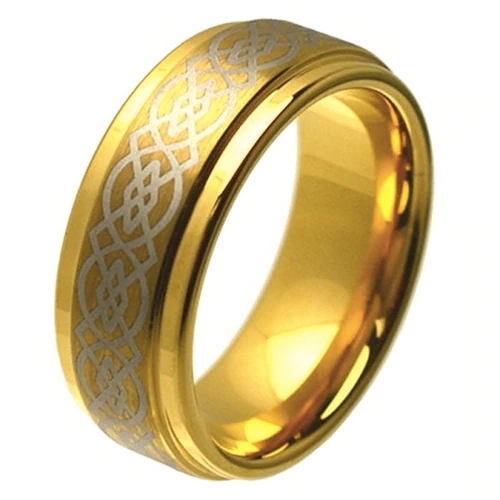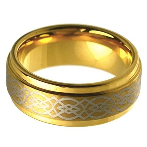 Women Or Men's Celtic Dragon Knot Tungsten Rings Carbide Wedding Band Rings,Laser Etched Gold Celtic Dragon Knot Ring with Beveled Edges With Mens And Womens For 4MM 6MM 8MM 10MM