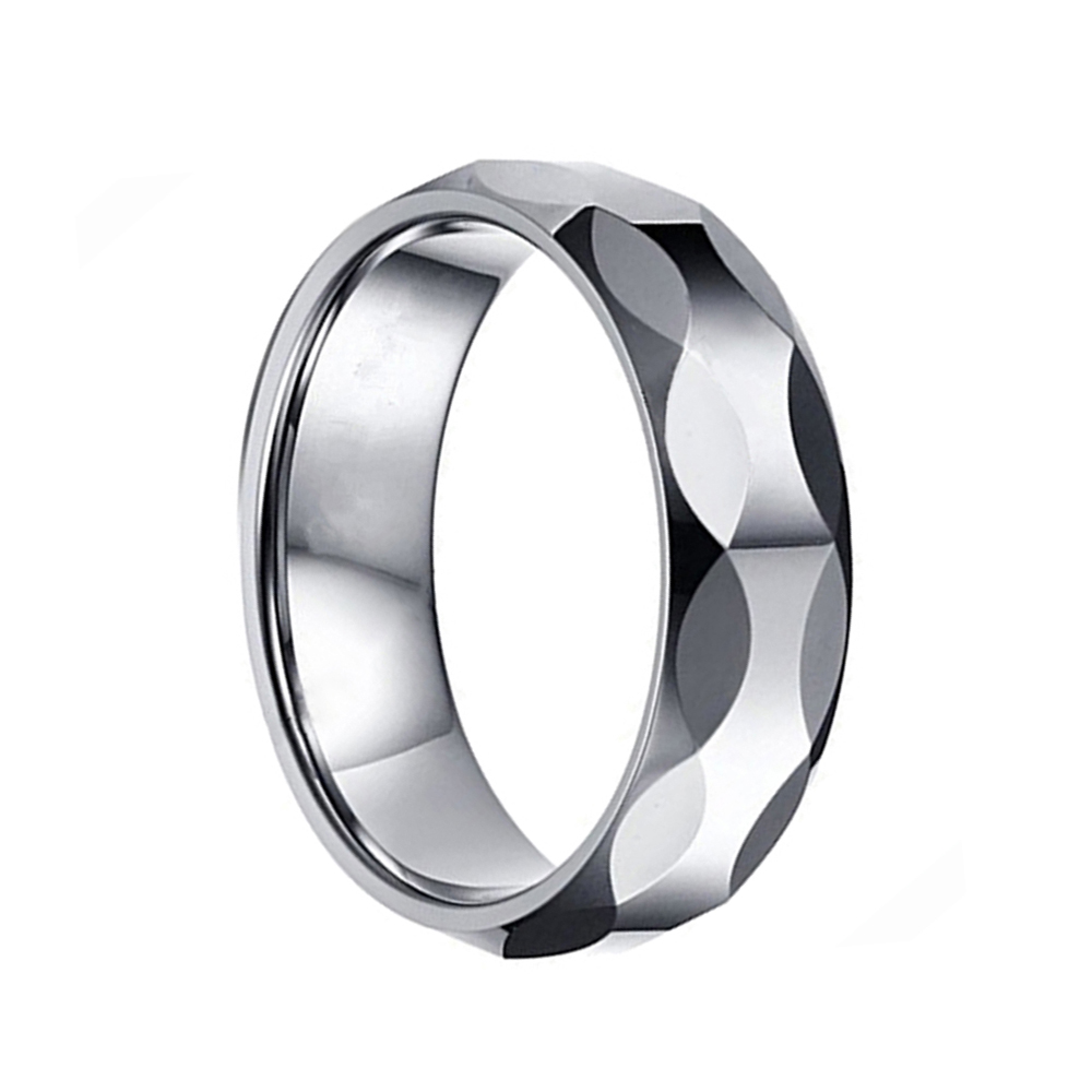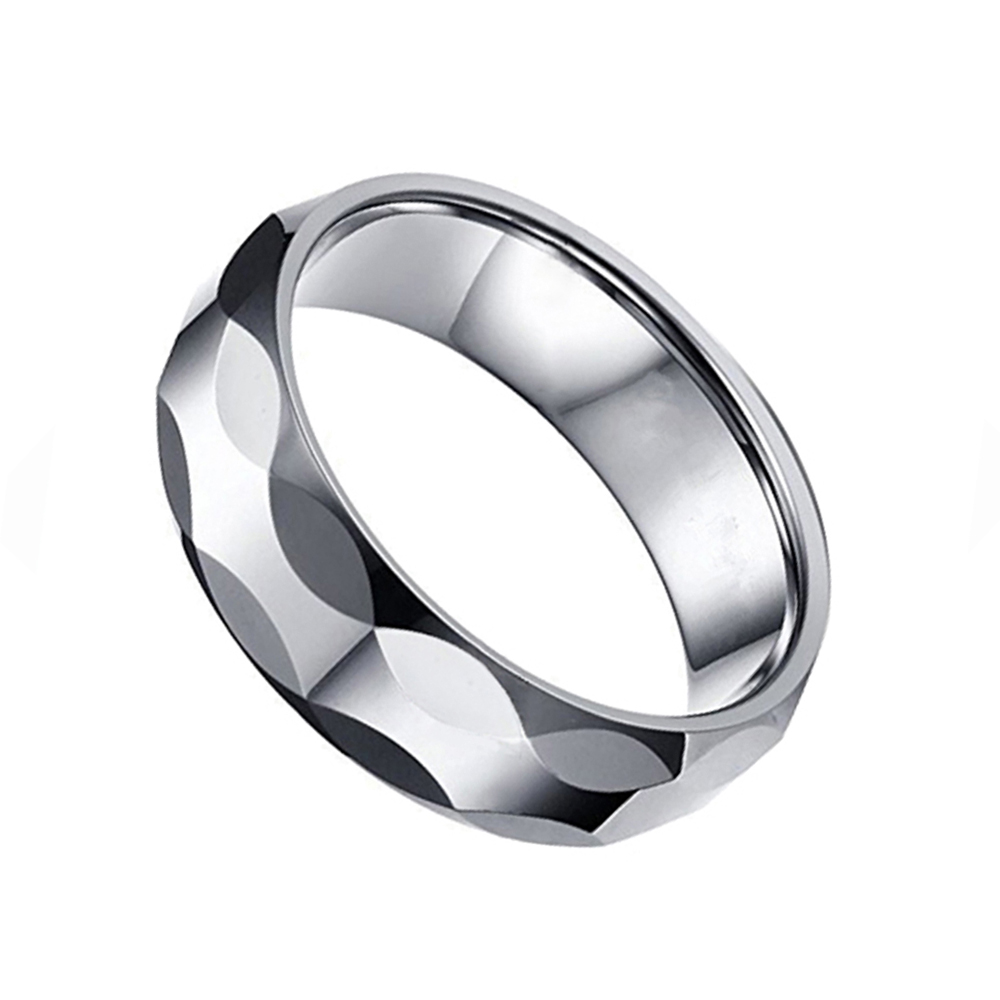 4MM 6MM 8MM Womens Engagement Silver Multi Faceted Tungsten Rings