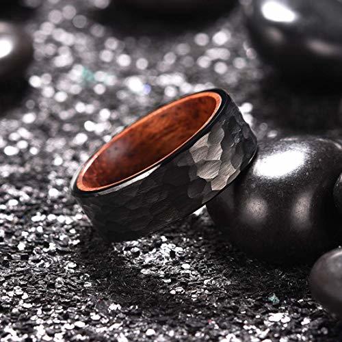 Women's Or Men's Blue Hammered Finish Tungsten Carbide Wedding Band Rings with Inside Wood Inlay With Mens And Womens Ring For Width 4MM 6MM 8MM 10MM