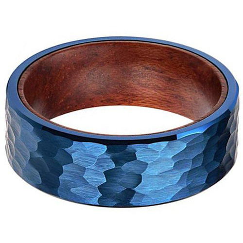Overall, a Blue Hammered Finish Tungsten Carbide Wedding Band Ring with Inside Wood Inlay can be a beautiful and durable choice for a wedding ring, regardless of gender. Ultimately, the most important factor is choosing a ring that feels comfortable and reflects your personal style and values.