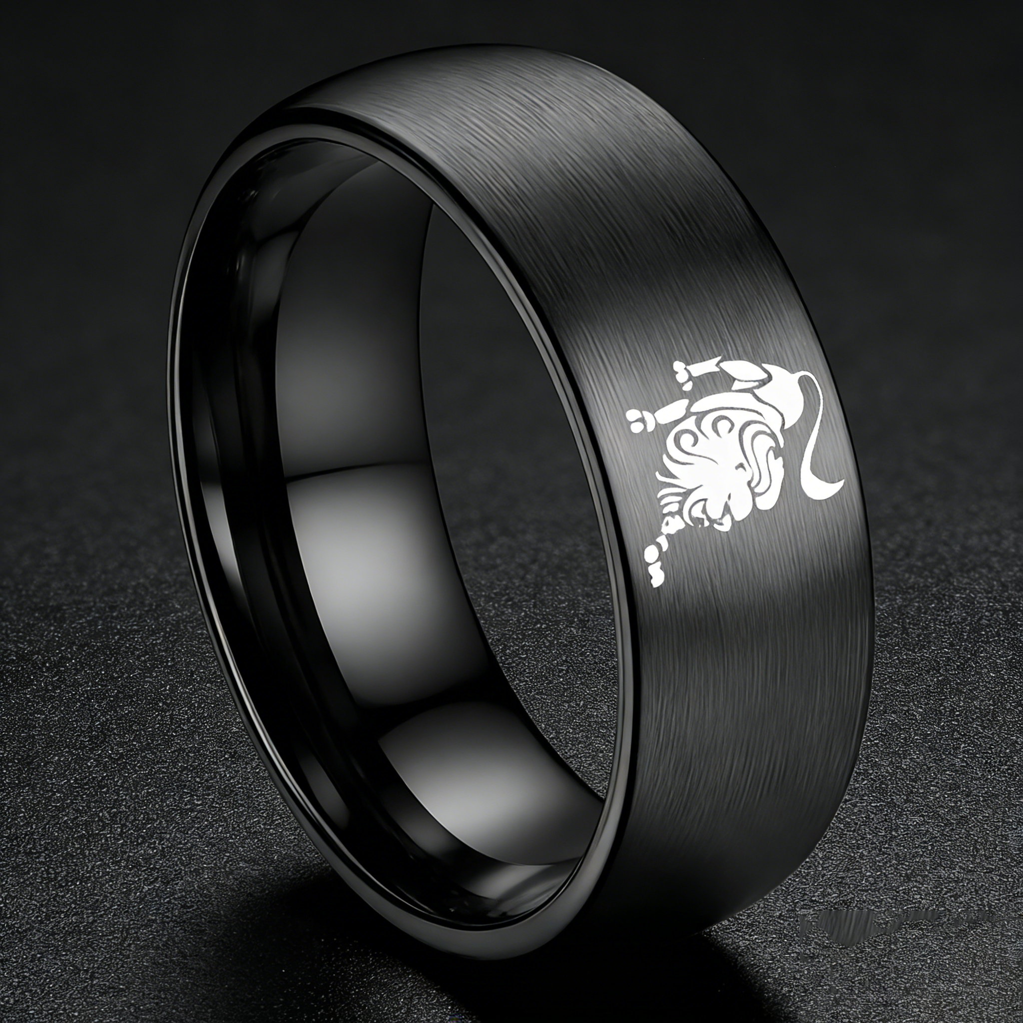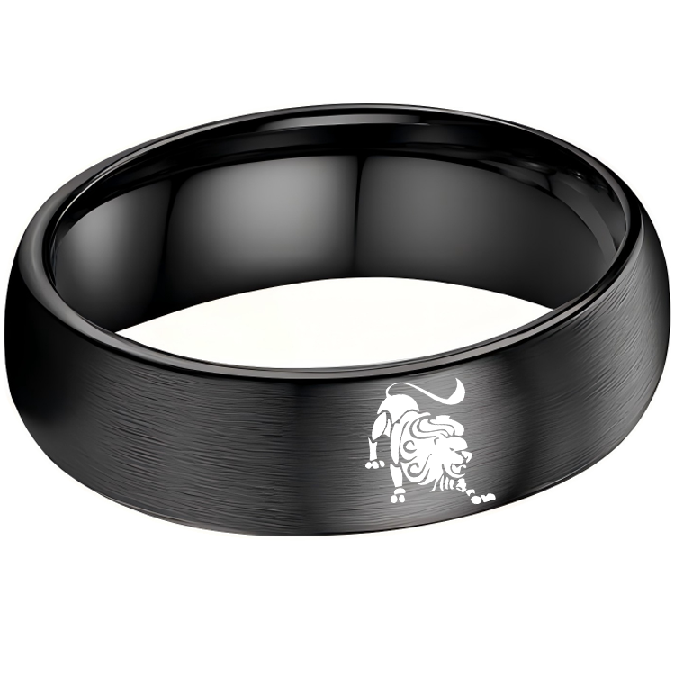 Womens Or Mens Leo Tungsten Carbide Wedding Rings Black Domed Top Couples Bands 4MM 6MM 8MM