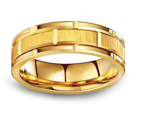 The duo-tone black and rose gold brick pattern adds a modern and sophisticated touch to the ring, while the faceted design adds an extra dimension of visual interest. These gold tungsten rings for men also feature a comfort grooved fit, making them easy and comfortable to wear all day long. They come in a range of widths, from 4mm to 10mm, making it easy to find the perfect fit for both partners.
