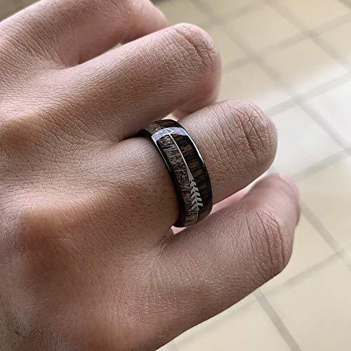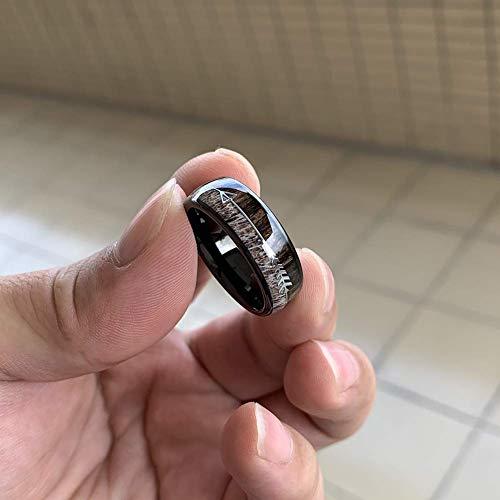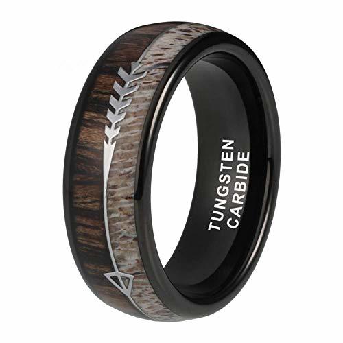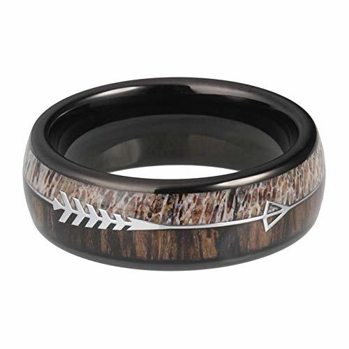 Women's Or Men's Tungsten Carbide Wedding Band Matching Rings,Black Cupid's Arrow over Wood Inlay,Tungsten Carbide Ring with High Polish Antler and Dark Wood Inlay,Domed Top Ring With Mens And Womens Rings For 4MM 6MM 8MM 10MM
