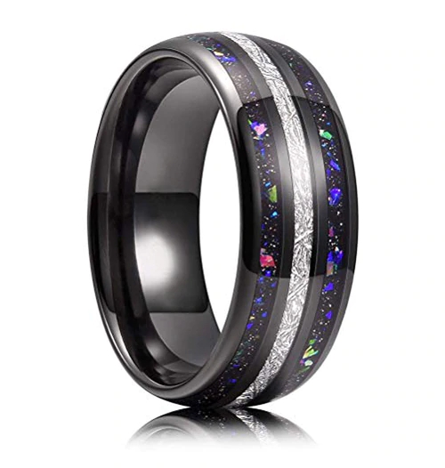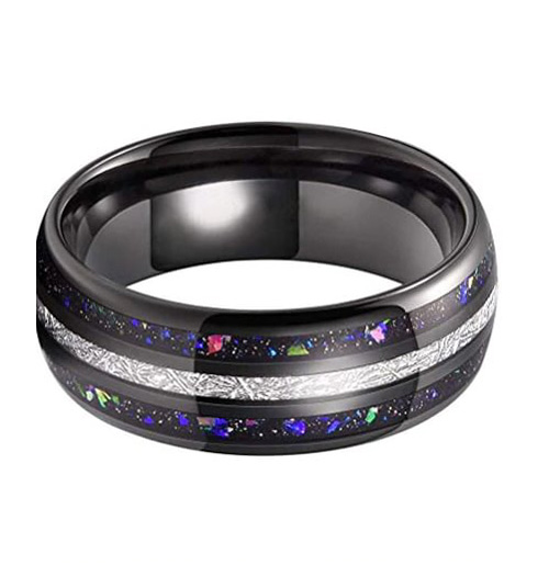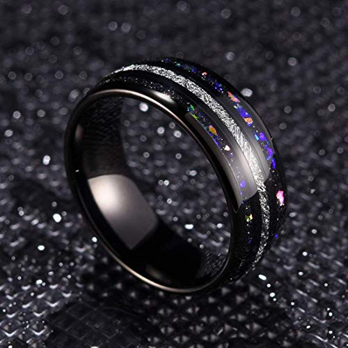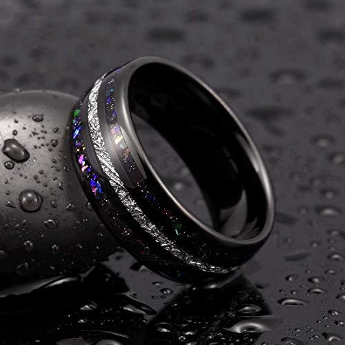 Women's Or Men's Tungsten Carbide Wedding Band Matching Rings,Black Tone Meteorite Rings with Multi Color Rainbow Opal Inlay Ring Organic colors With Mens And Womens For Width 4MM 6MM 8MM 10MM