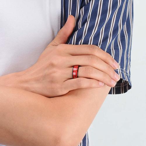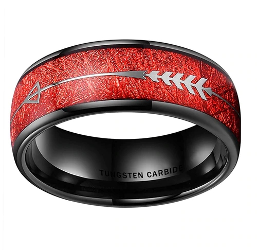 The black-tone finish of these rings adds a modern and stylish touch to the design, while the Cupid's arrow and red inspired meteorite inlay add a unique and personal touch. The use of tungsten carbide ensures that these red wedding bands are durable and resistant to scratches, making them a great choice for daily wear.