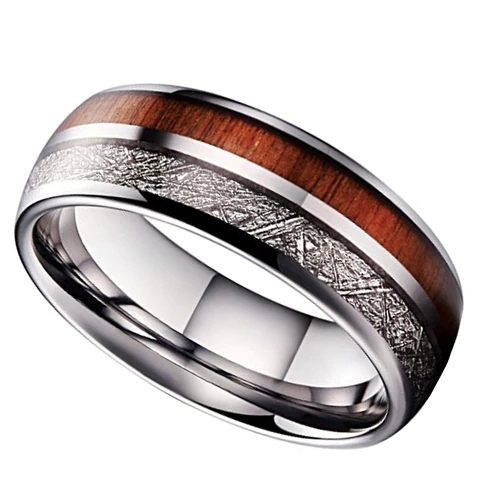 Women's Or Men's Tungsten Carbide Wedding Band Matching Rings,Domed Tungsten Carbide Ring With Wood and Inspired Meteorite Inlay Rings With Mens And Womens For Width 4MM 6MM 8MM 10MM
