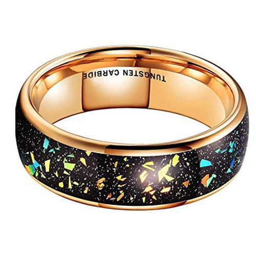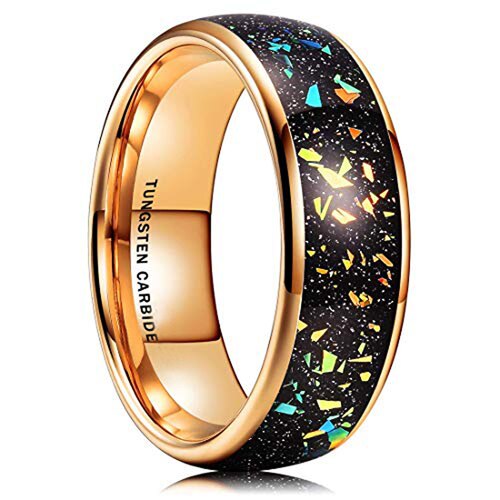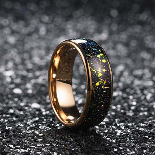Women's Or Men's Tungsten Carbide Wedding Band Matching Rings,Gold band with Multi Color Rainbow Fragments Inlay Ring With Mens And Womens For Width 4MM 6MM 8MM 10MM