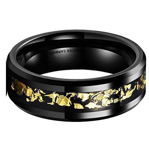 Women's Or Men's Tungsten Carbide Wedding Band Matching Rings,Wedding ring bands Black with Gold Foil Inlay.Tungsten Carbide Ring With Mens And Womens For Width 6MM 8MM