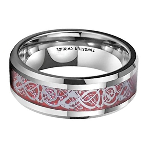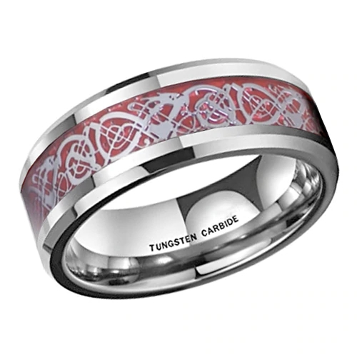 Women's or Men's Tungsten Carbide Wedding Ring Band,Silver Resin Inlay Red Tungsten Celtic Dragon Knot Rings With Mens And Womens For 4mm 6mm 8mm 10mm 12mm