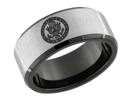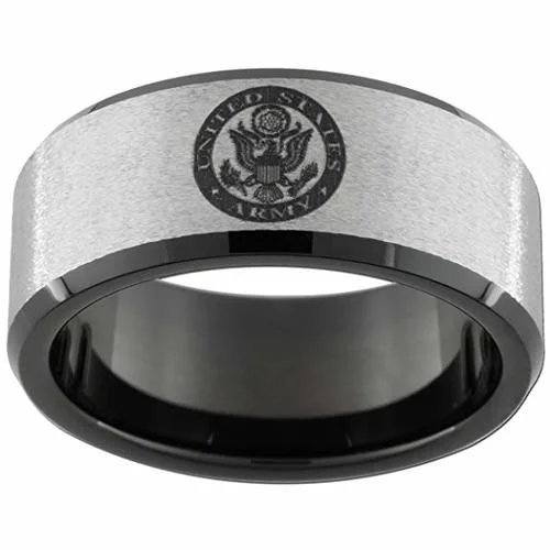 Women's Or Men's U.S. Army Tungsten Carbide Wedding Band Rings,Military Wedding ring bands. Silver with Black Edges and Laser Etched United States Army Logo Ring With Mens And Womens For Width 4MM 6MM 8MM 10MM