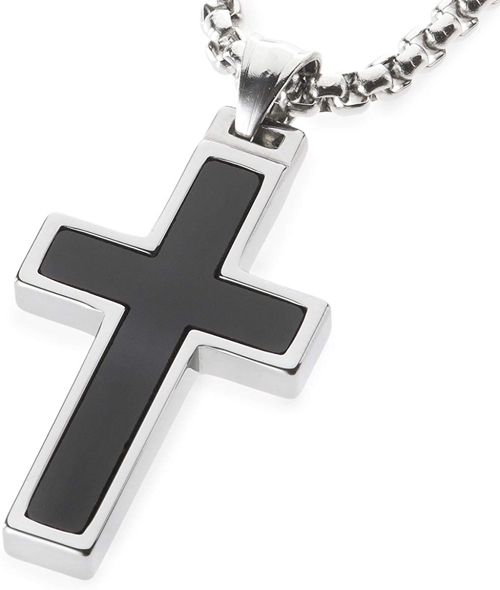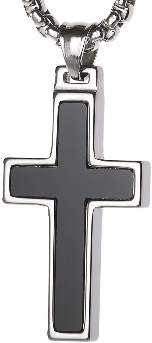 Women's Or Men's Unique Onyx Inlay Tungsten Cross Pendant Necklace Jewelry Gifts For Mens And Womens